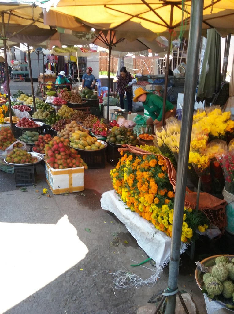 Bella colorata…la frutta!!..Frutta e fiori del Vietnam!!..Tanti fiori!..Che colori!!..