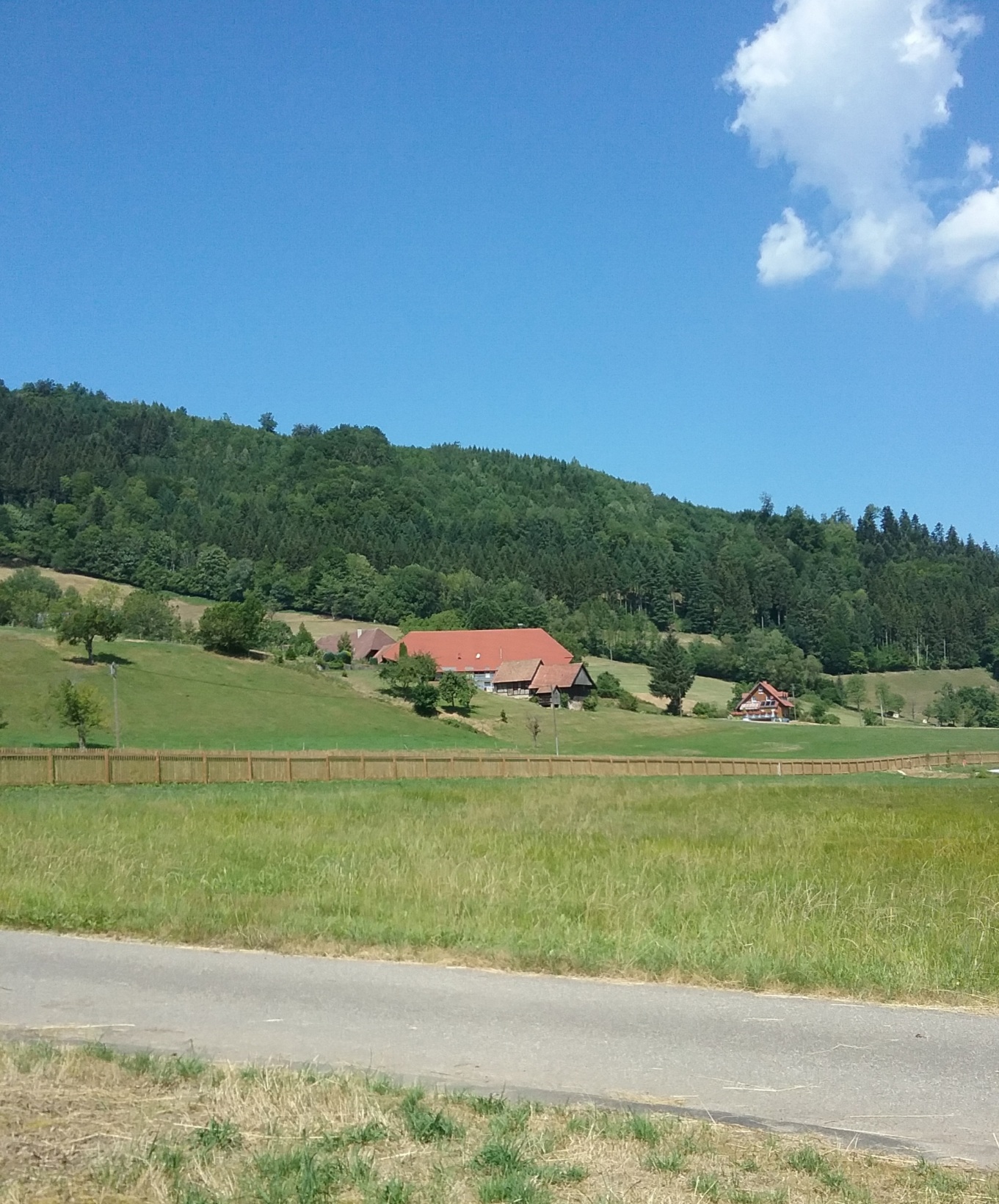È un tratto di strada molto suggestivo…prati verdi ed un po’ più in là…querce…betulle…faggi…Tra questa natura vivono cerbiatti…cervi…istrici…scoiattoli…È la strada degli orologi a cucù…La strada che conduce all’orologio gigante!..