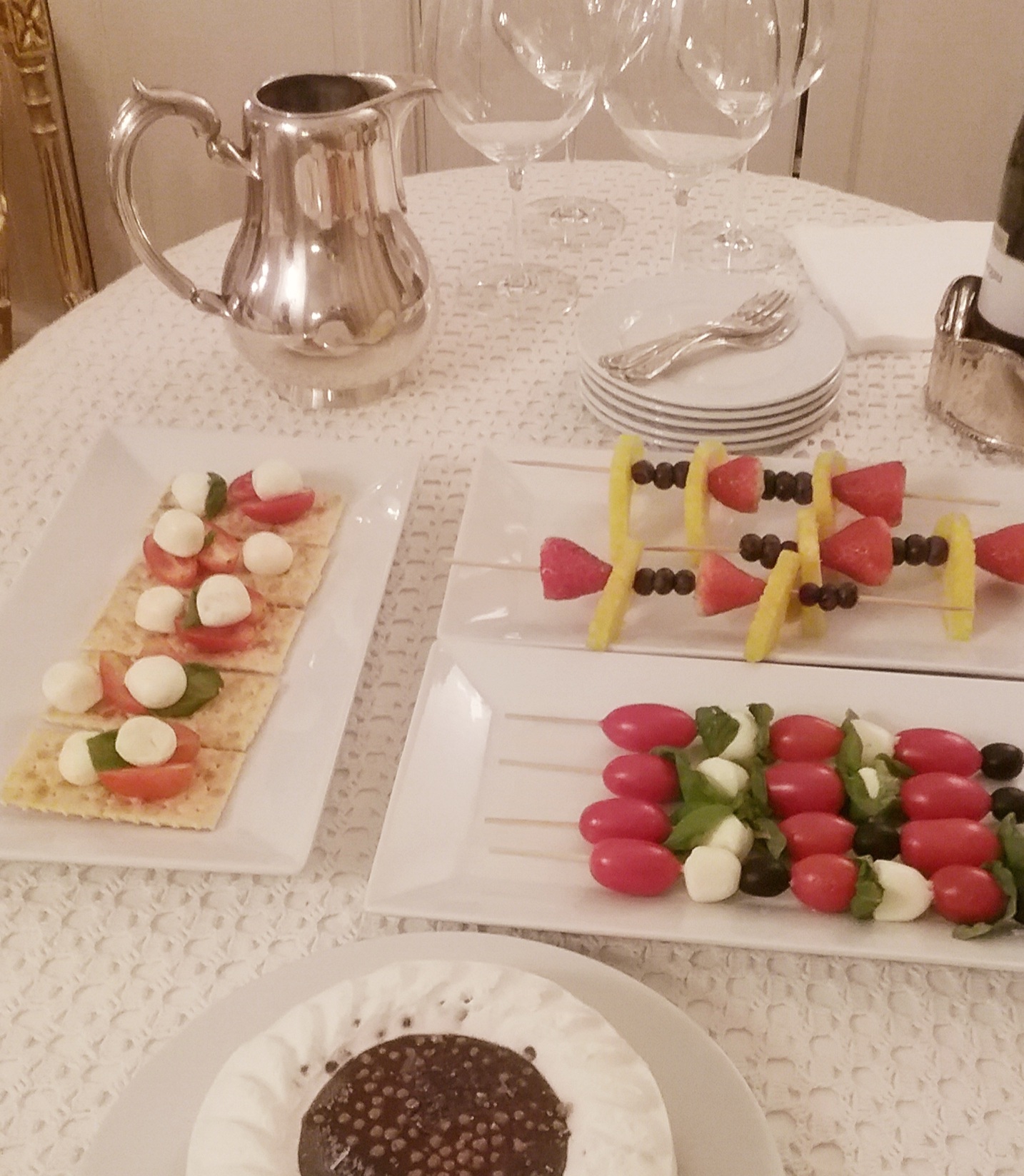Per fortuna la torta gelato era nel frizer!..Preparai gli stecchi con la frutta…fragole…mirtilli e pezzetti di ananas…un goccio di vino…se ricordo…era un Traminer…