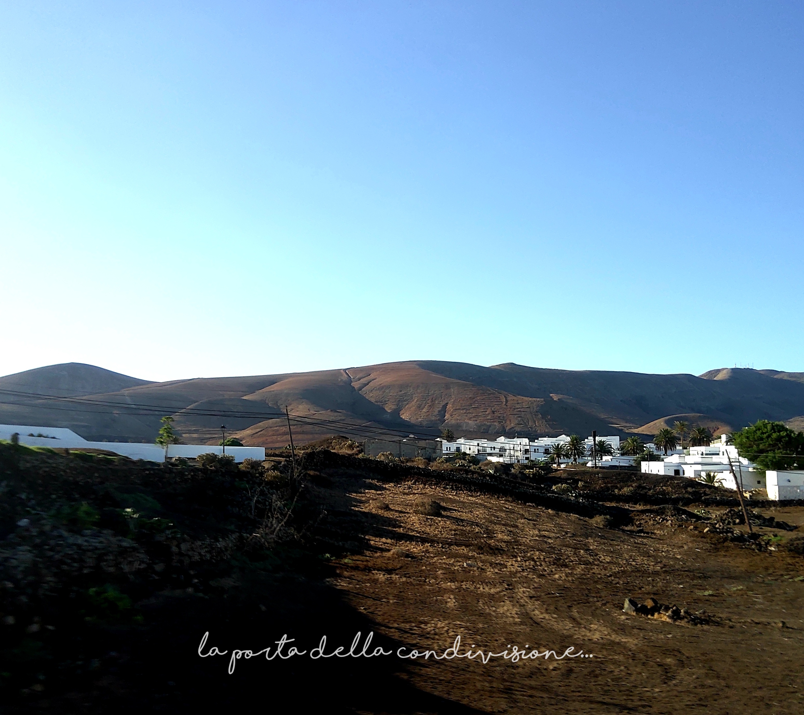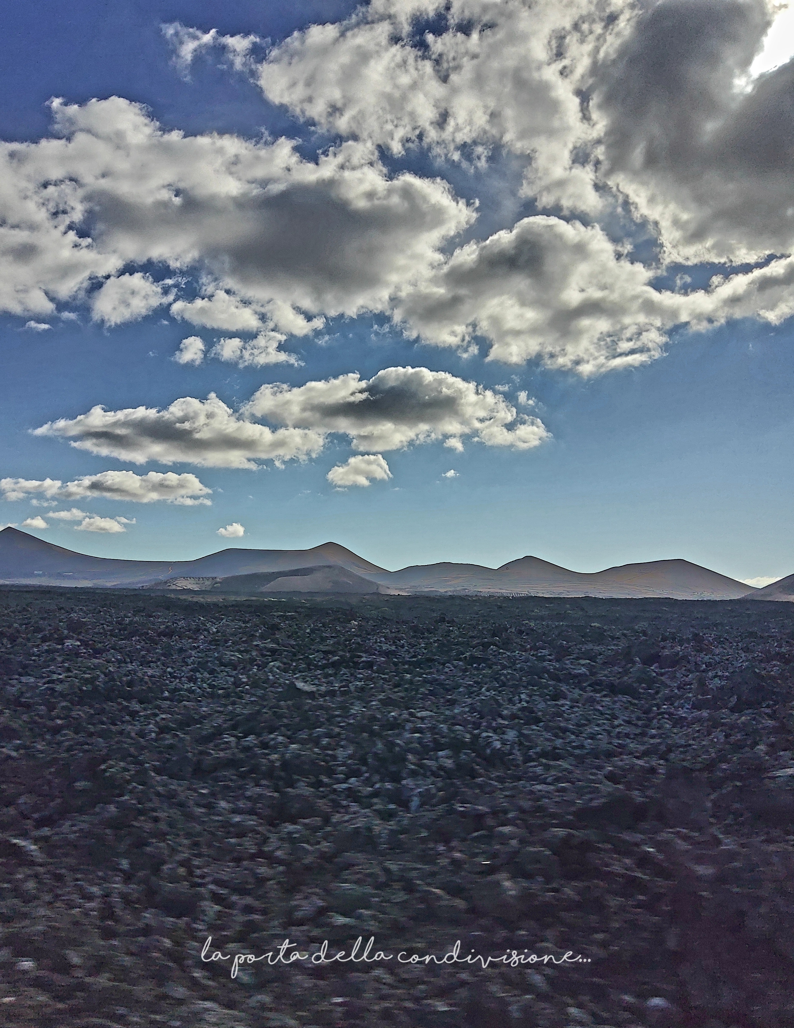 Il paesaggio è del colore dell’ocra…nero…verde…e celeste del cielo e del grande mare…l’oceano…Tutto questo lo rende diverso e unico e la ‘Geria’ è diventata…’Riserva della Biosfera dell’Unesco’I suoi abitanti chiamati LANZAROTENOS…ne sono a ragione,orgogliosi…